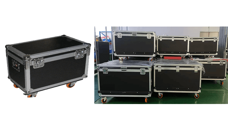 Roller type aviation case packaging facilitates the transfer of screens from one place to another during repeated use.